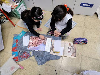 Almohadones y nueva mesa en el rincón de recreo ¡Gracias familias de 1º!
